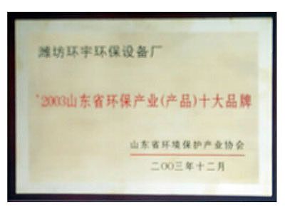 山東省環保產業(產品)十大品牌
